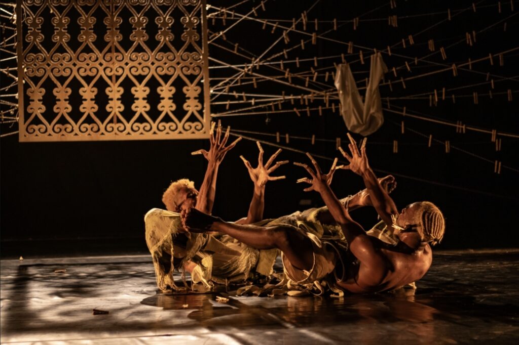 Sankofa. Uma coreografia ancestral em atos que narra histórias de muites. Um transe para afirmar e firmar, ao som de sambas de caboclo, danças de orixás, pagode baiano, funk, silêncio e reza. Dembwa é construído a partir das memórias biográficas de Marcos e Ruan — homens pretos, periféricos, bixas, dançarinos e filhos de terreiro — e ergue-se como um rito de retorno e reconhecimento. Dança os quintais de mãe, as lavadeiras e ganhadeiras, os terreiros e suas forças, os gestos e silêncios que moldam corpos dissidentes no Brasil.