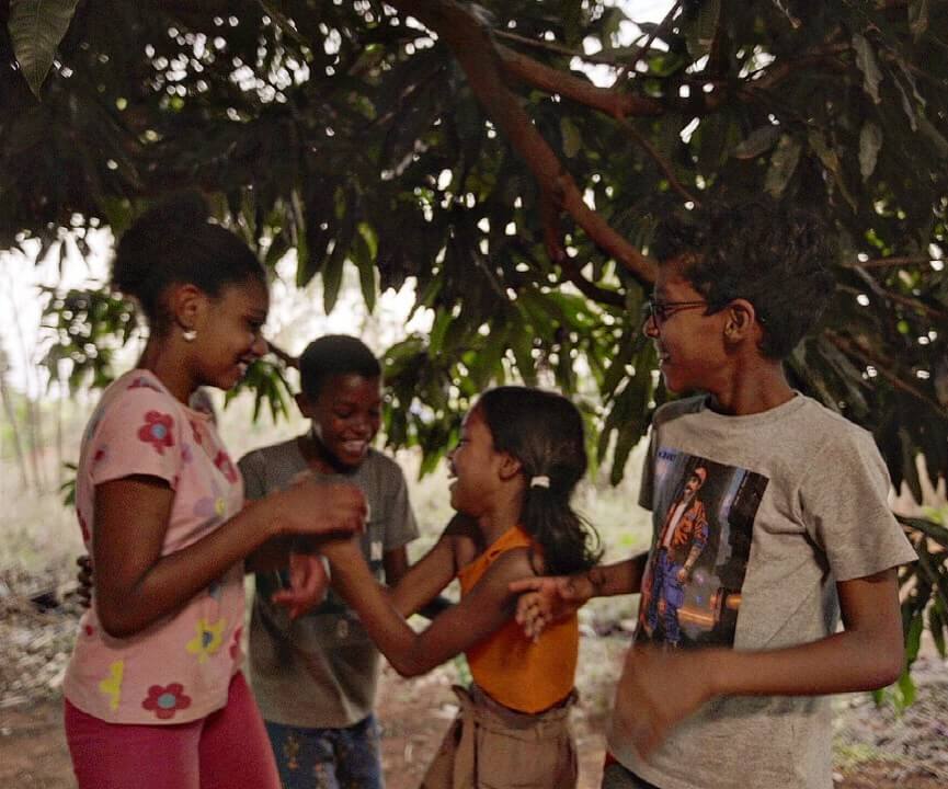“Eu queria um filme muito colorido, que trouxesse a Chapada Diamantina, mas que não trouxesse a ideia do interior pobre, sabe? Do sertão seco, sofrido. Eu queria que fosse realmente o interior que a gente vive, que é um interior colorido, próspero e de fartura. Então, as imagens começam a nascer muito nesse sentido. A gente tem várias referências: por exemplo, o altar vem muito da referência do jarê, porque essa religião existe somente aqui na Chapada Diamantina. A mesma coisa com as crianças: a gente quis trazer essa energia das crianças, mas de uma forma que não fosse caricata, que fosse muito nossa e original. Então, as coisas foram se moldando muito nas memórias de todo mundo.”